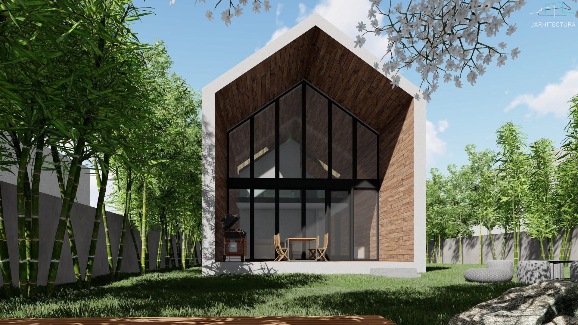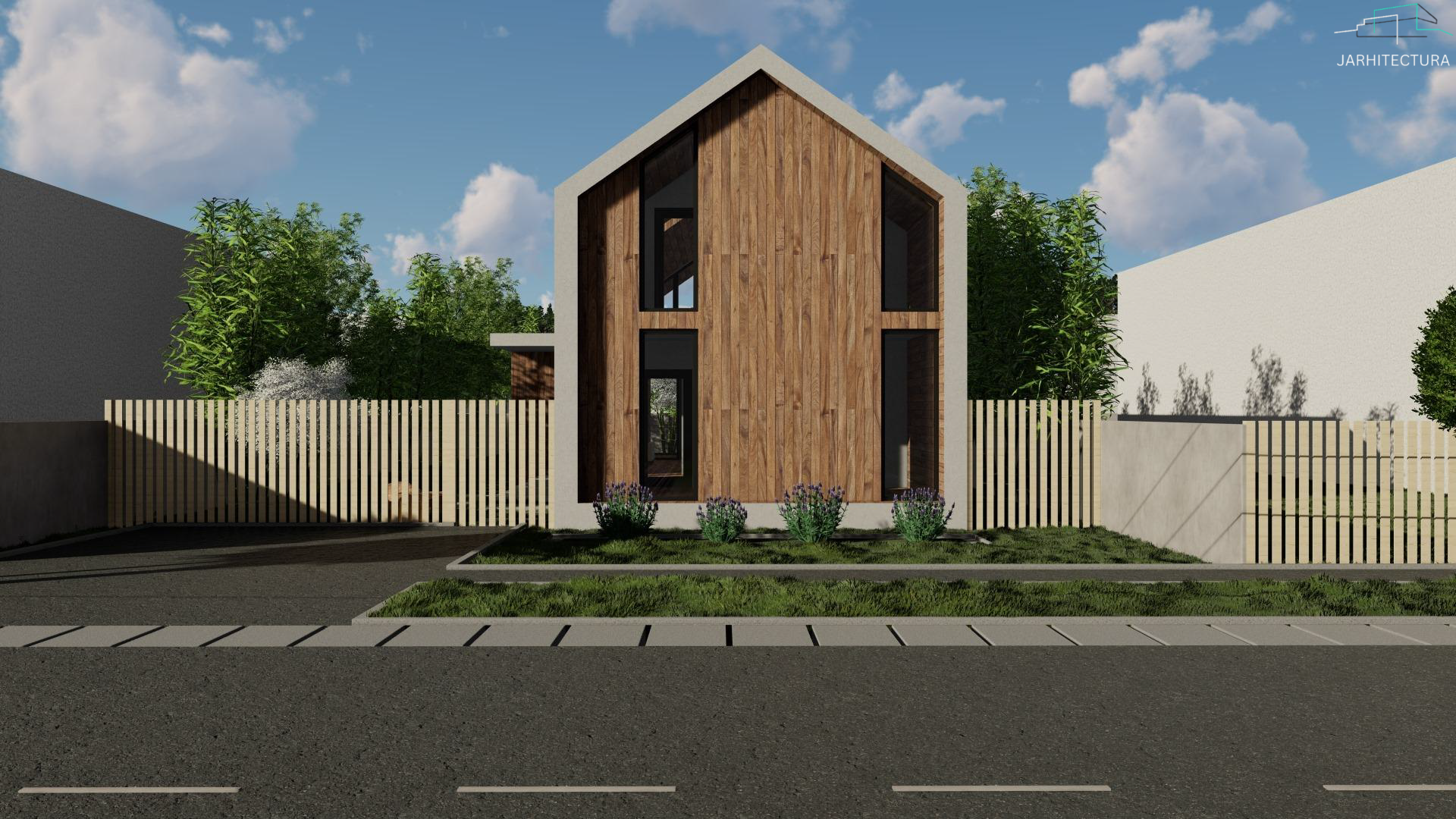 Constructia este compusa din 4 camere, living si 2 bai. Bucataria impreuna cu dining-ul fac parte din zona de zi alaturi de living. La etaj este prevazut un birou deschis cu vedere spre living. Este ideala unei familii cu un copil.